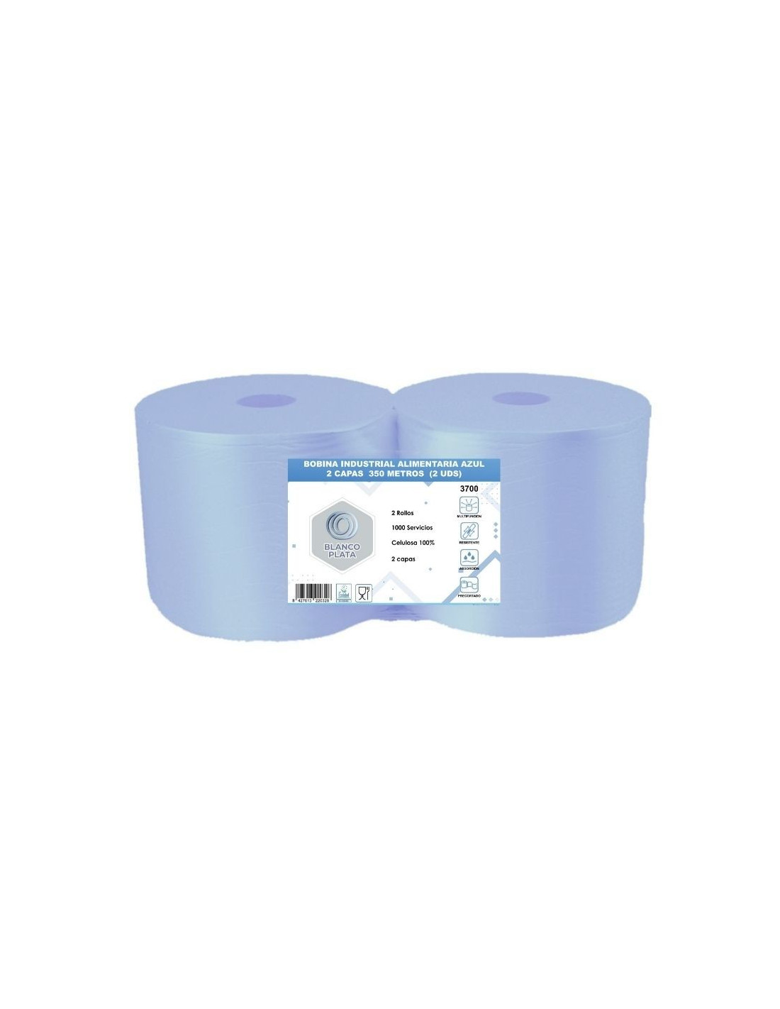 BOBINA INDUSTRIAL ALIMENTARIA LAMINADA AZUL BLANCOPLATA 2C 350M 2 UNIDADES