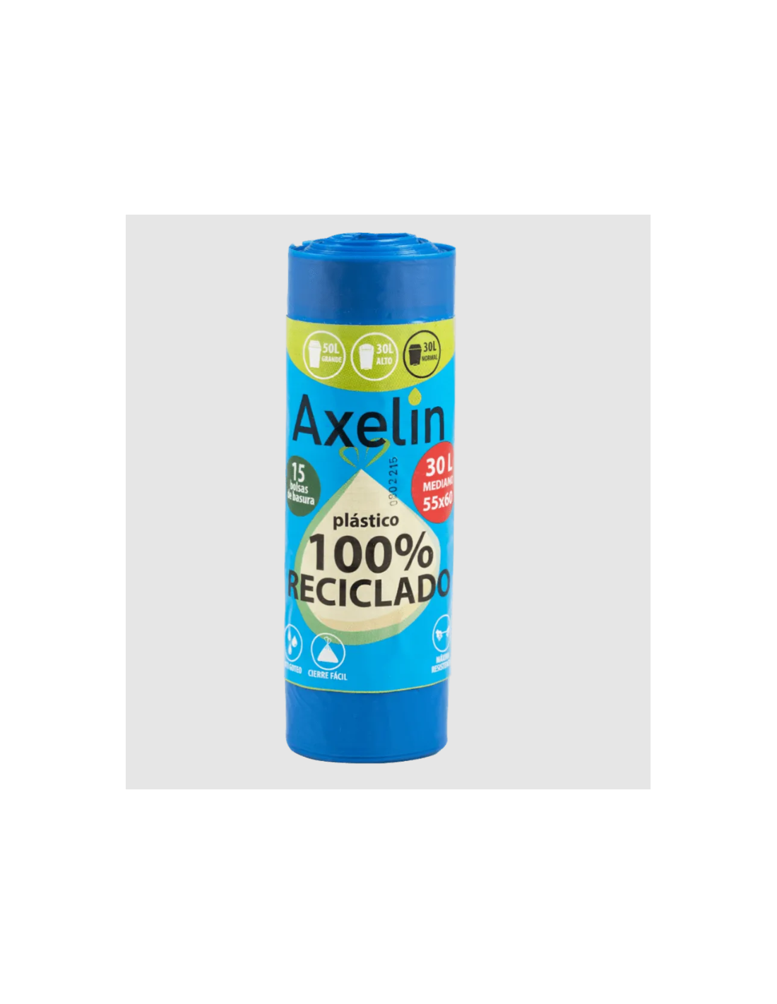 BOLSA BASURA AZUL, 55x60 AXELIN C/FACIL G100 (15u)