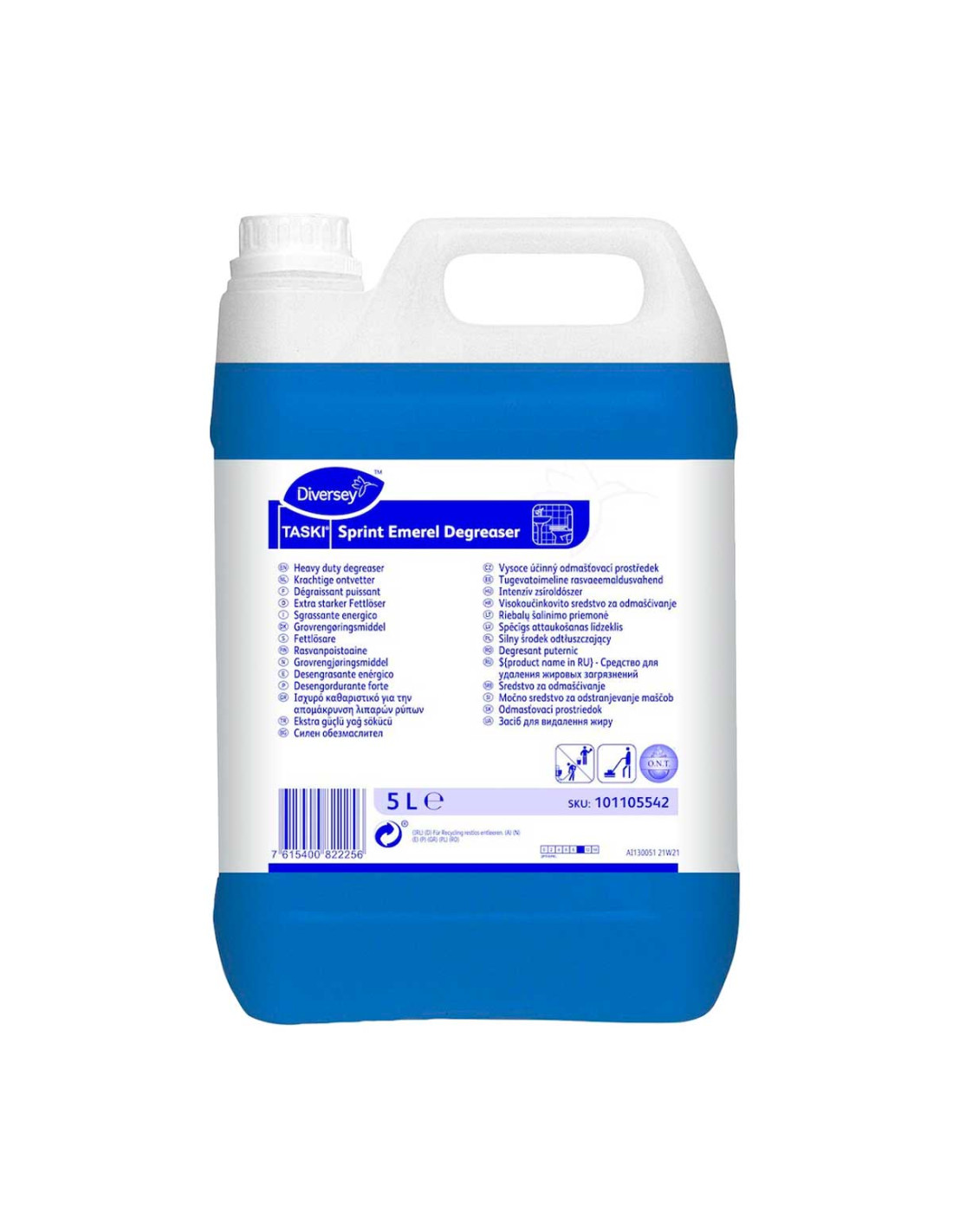 Sprint Emerel desengrasante en formato de 5 litros es un potente desengrasante perfumado capaz de eliminar todo tipo de residuos orgánicos, aceites o grasas así como cualquier superficie con gran suciedad. Válido para suelos, paredes, el interior de elementos de transporte y zonas en las que se trabaja con alimentos. Su fórmula con productos alcalinos y secuestrantes garantizan una máxima eficacia en todo tipo de aguas.