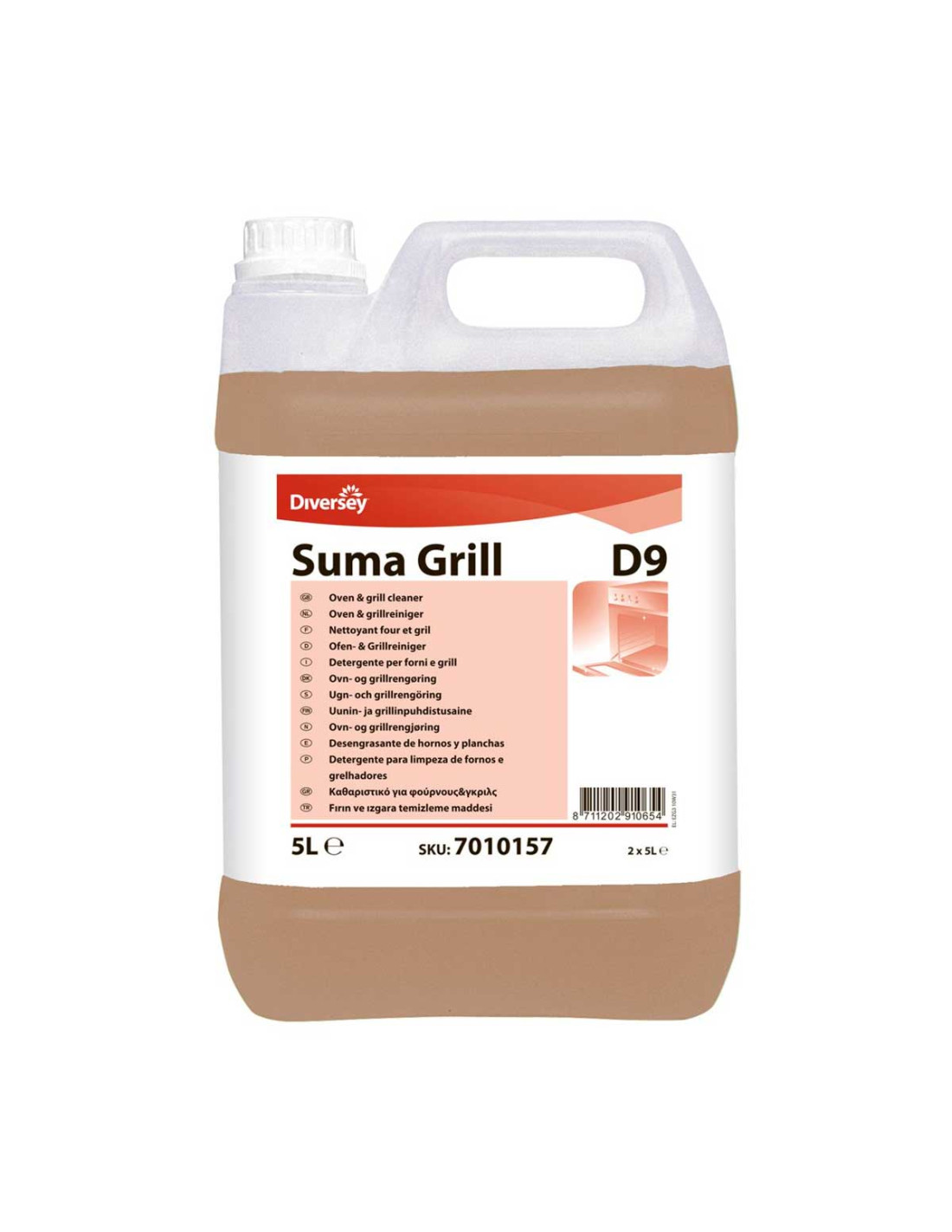El desengrasante para hornos y planchas Suma Grill D9 en formato de 5 litros en un desengrasante profesional altamente concentrado adecuado para la limpieza de las zonas de cocina que acumulan más suciedad. Diluído con agua sirve para la limpieza de freidoras. Sus componentes alcalinos eliminan la suciedad resquemada.