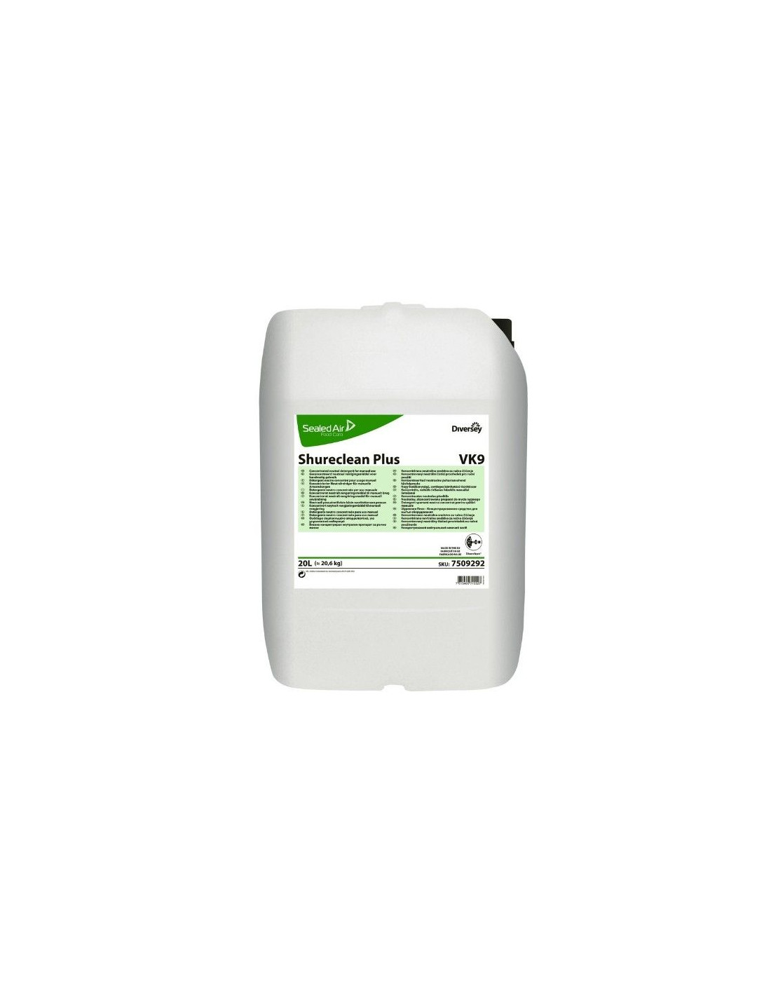 Shureclean Plus VK9 en formato de 1 unidad de 20 litros es un detergente líquido neutro pensado exclusivamente para la industria alimentaria. Su mezcla de detergentes de alta espuma y emulsificantes eliminan de manera eficaz las grasas y aceites de equipos de preparación de alimentos, utensilios o depósitos de cocción. Además tambien vale para la limpieza de suelos, paredes o cualquier superficie de trabajo. Shureclean Plus VK9 se puede utilizar de manera manual, spray o por inmersión. Su alto nivel de concentración lo hace un producto muy económico.