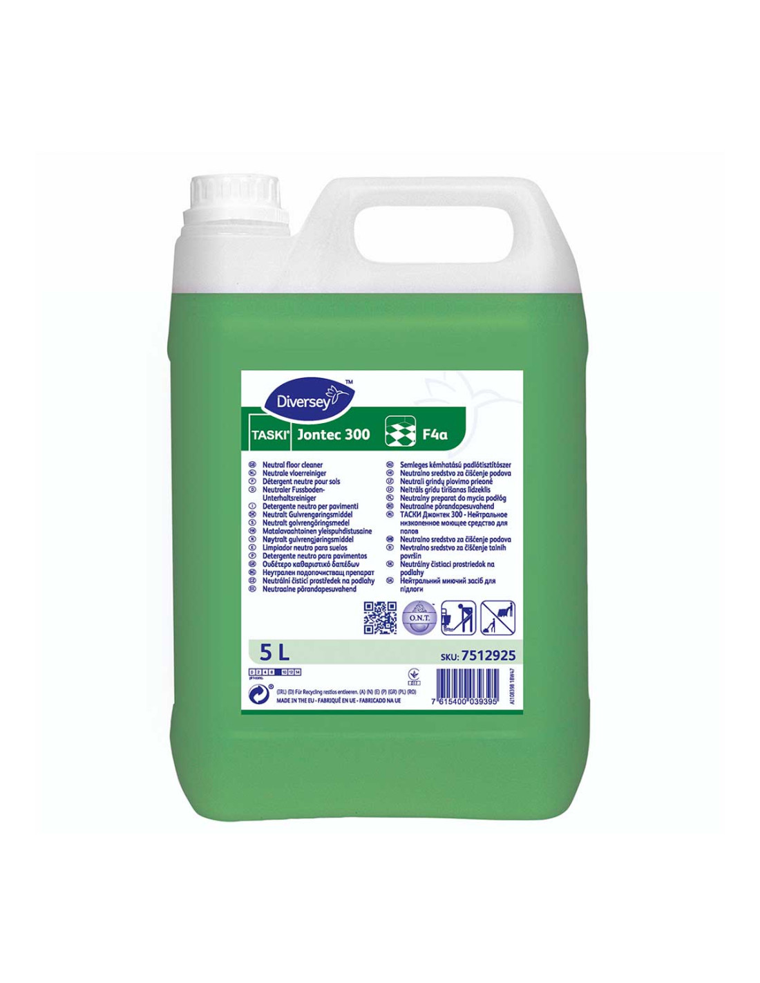 El fregasuelos Ph neutro Jontec 300 de 5 litros es un fregasuelos con ph-neutro adecuado para todo tipo de suelos resistentes al agua, de secado rápido, no deja velos. Con tecnología ONT que neutraliza las moléculas responsables de los malos olores y dejando un agradable perfume. Se puede usar también en fregadoras automáticas o máquinas monodisco. Muy económico gracias a su baja dosificación.