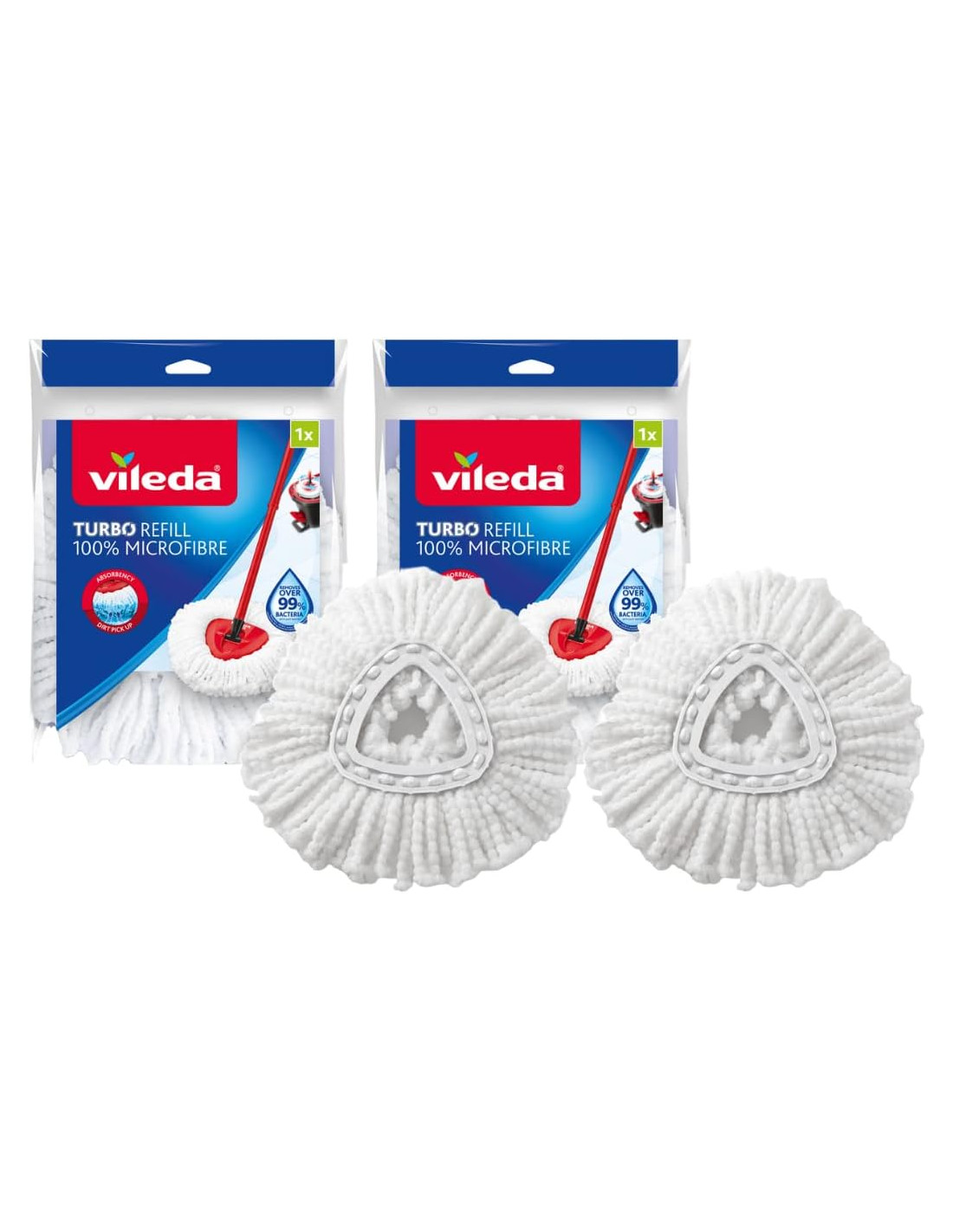 Vileda 160504 EasyWring and Clean Turbo Classic, Cabezal de Recambio de fregona de Microfibra, Blanco, 2 Unidades