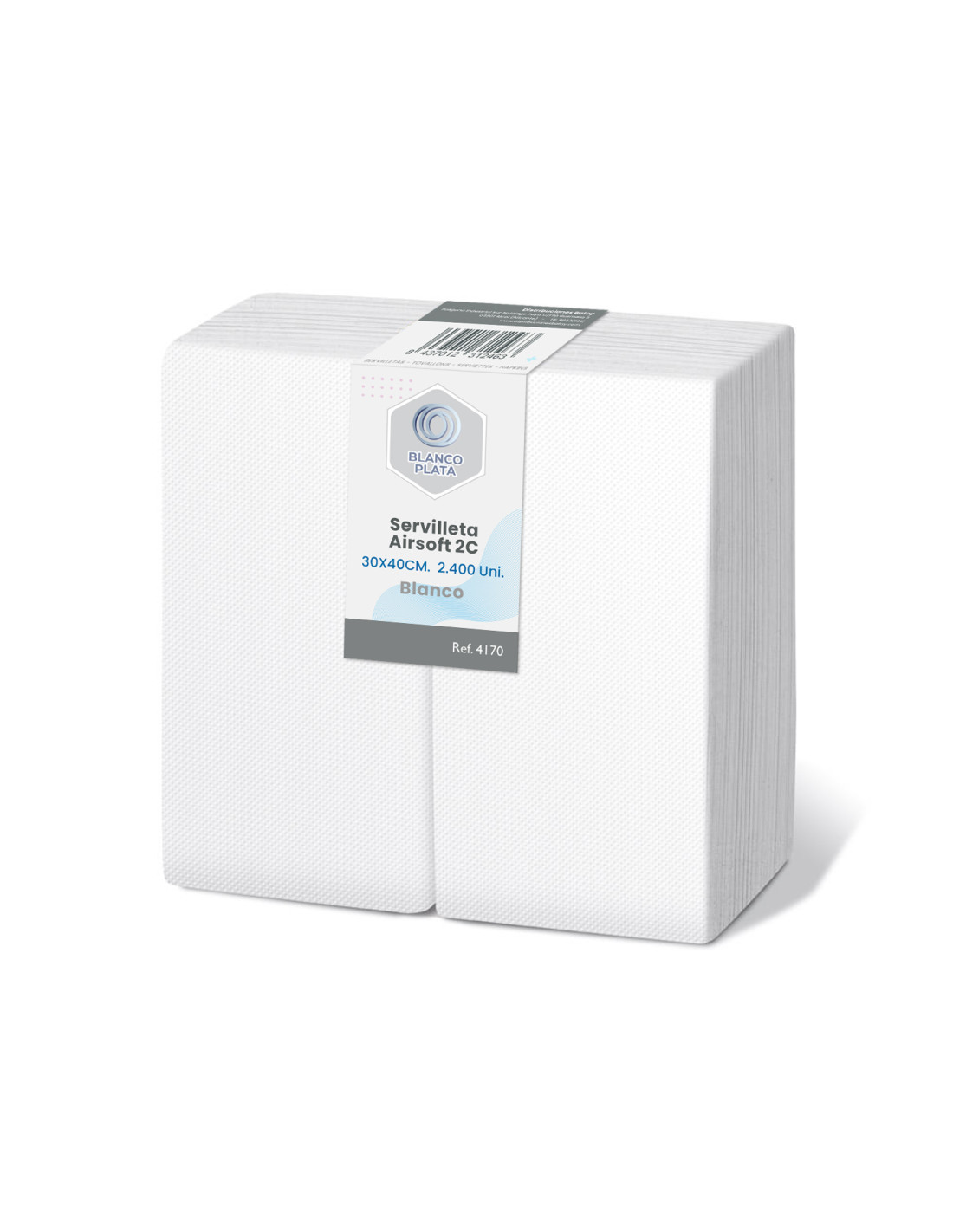 SERVILLETA AIRSOFT 30x40 2C1/6 BLANCO BLANCOPLATA 2400 UNIDADES
