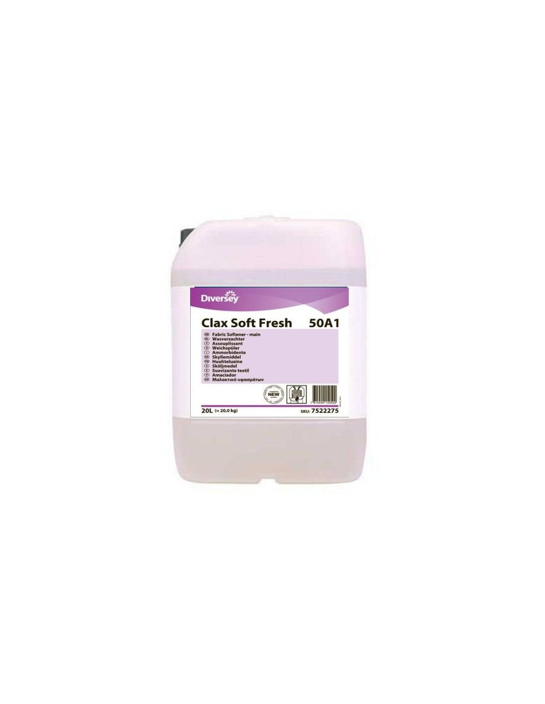 <p><strong>Clax Soft Fresh 50A1</strong> en formato de 20 litros es un <strong>suavizante textil</strong> especial para el uso en lavanderías y puede ser dosificado automática o manualmente. Es apto para todo <strong>tipo de tejidos</strong>. Su potente acción suavizante es válido para <strong>toallas, sábanas, prendas delicadas, lana</strong> etc..</p>